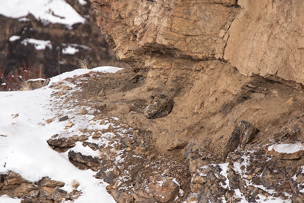 Of course, with the hangover of this sighting still fresh, we got to see another Snow Leopard the following day! And spent the entire day watching it do what a cat does best – nap!
