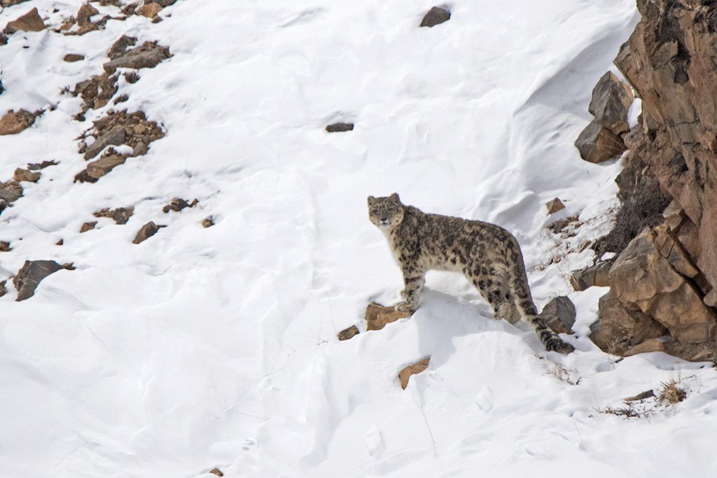 Every step showed its familiarity with the territory. This is the kingdom of the Snow Leopard indeed. And the occasional glances at us told us that we were accepted in its gracious hospitality.